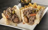 Our famous slow-roasted italian beef is topped with hot giardiniera & mozzarella.